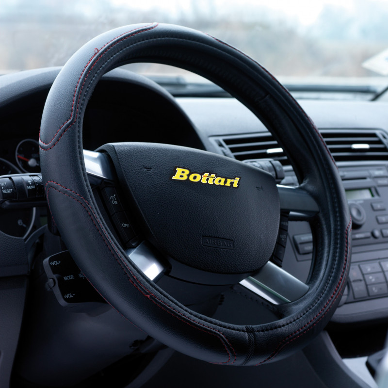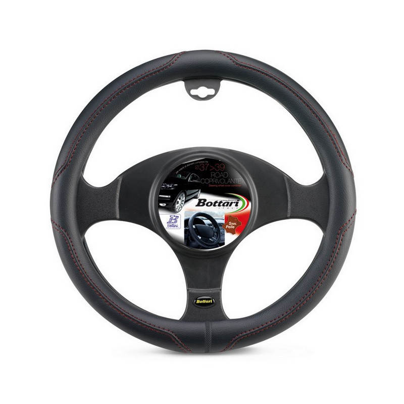 Coprivolante "ROAD" nero/rosso in simil pelle 37/39CM cuciture a vista