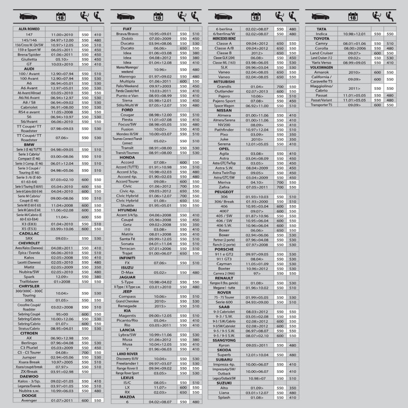 Controlla se il modello scelto è adatto al vostro pneumatico consultando la tabella.